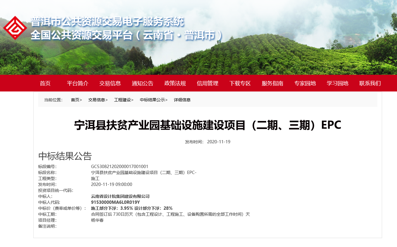 12億!建(jian)設公司中標(biao)寧洱縣扶(fu)貧產業園基礎設施建(jian)設項(xiang)目(二(er)期、三期)EPC