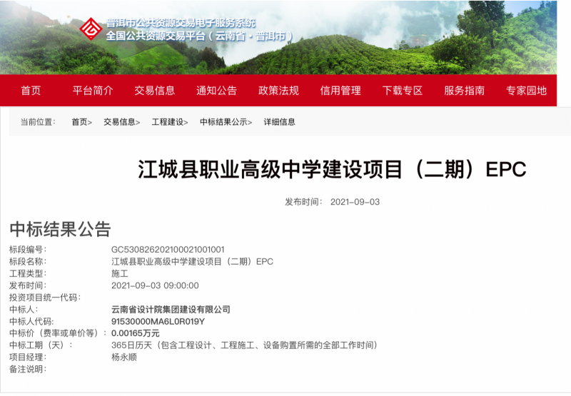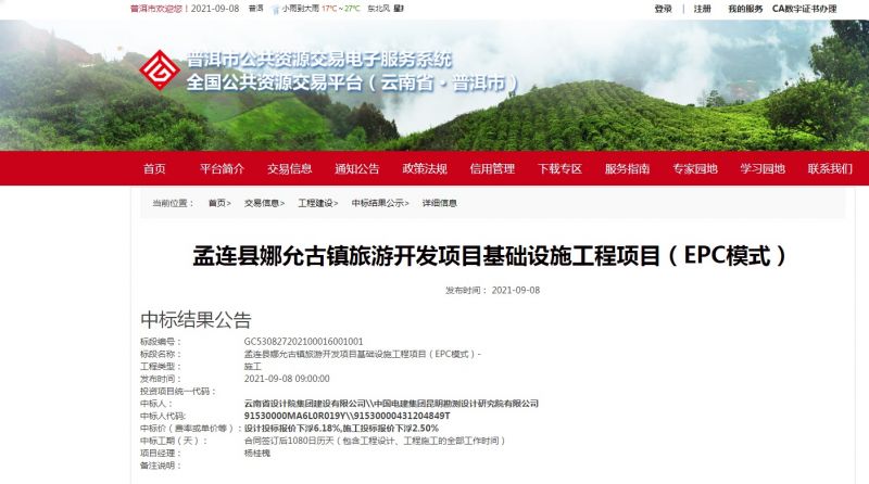 近期,公(gong)司在(zai)經營工(gong)(gong)作中(zhong)持續發力,順(shun)利中(zhong)標孟連縣娜允古鎮旅(lv)游(you)開(kai)發項(xiang)(xiang)目基礎設(she)施工(gong)(gong)程(cheng)項(xiang)(xiang)目、江(jiang)城縣職業高(gao)級中(zhong)學建設(she)項(xiang)(xiang)目(二期)EPC、南澗擁(yong)政水庫(ku)工(gong)(gong)程(cheng)建設(she)項(xiang)(xiang)目EPC等(deng)三(san)個(ge)項(xiang)(xiang)目,中(zhong)標總額達9.47億元!