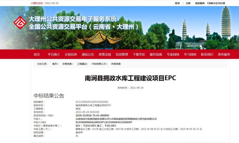 南澗擁政水庫工程建設項目EPC